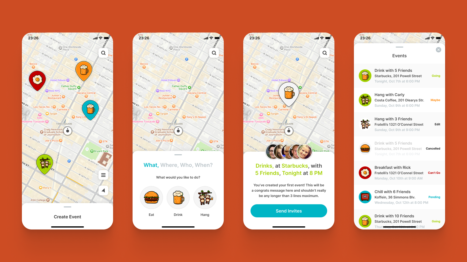 A sleek user experience was our top priority in designing the app, ensuring a seamless process for organizing meetups with friends.